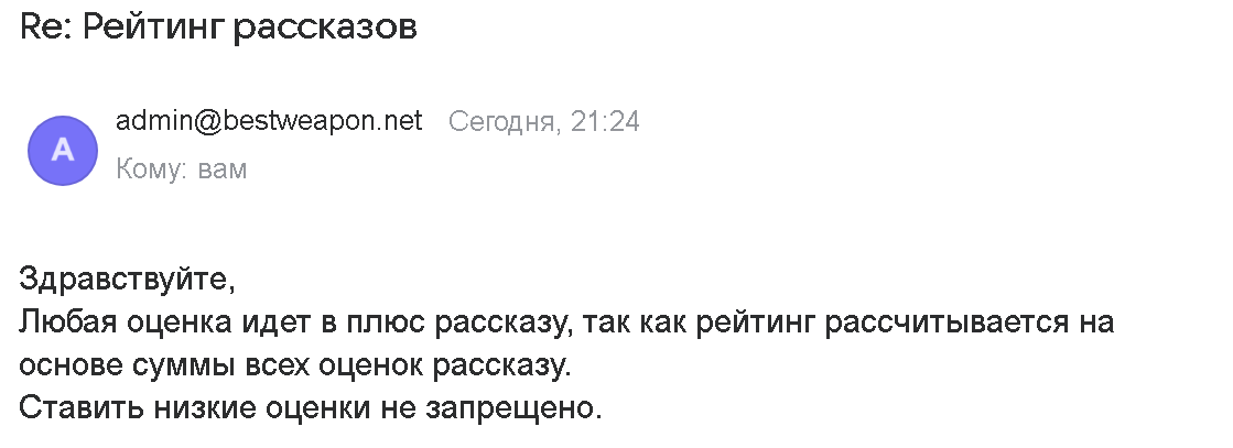 Достаточно взглянуть на любой рассказ. Вы почти не увидите объективной картины - сплошные идеальные 10 или "скомплектованные" 9+. И вот вопрос на засыпку: разве были бы такие глянцевые рейтинги, если бы систему не настраивали против честной, в том числе негативной, оценки?