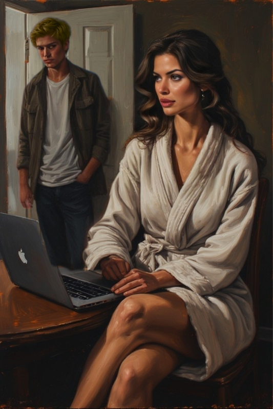 ![]() ДЕНЬ 4. Дима открыл глаза, и голову словно свинцом налило – будто после жестокой попойки, хотя он не пригубил ни капли. Лишь ворочался, измученный, до первых петухов, прокручивая в голове ехидные слова Дениса. "Она сама же играет!" Эта фраза пульсировала в голове, как назойливый колокол. Дима сжал кулаки, чувствуя, как ногти болезненно впиваются в ладони. Издалека, из-за двери, доносился приглушенный щебет голосов. Женский смех – легкий, словно летний ветерок, игривый – и низкий мужской бас, самоуверенный до тошноты, довольный собой. Мама и Денис. Дима, стараясь ступать бесшумно, как тень, встал и приник ухом к двери. "— …Ты сегодня просто невыносим…" Это был голос Алины, но какой-то незнакомый оттенок проскользнул в нем – не строгость, не раздражение, а… дразнящая нежность? "— А тебе нравится, когда я такой?" – самодовольно промурлыкал Денис, и Дима живо представил его ухмылку. Он отпрянул от двери, словно прикоснулся к раскаленному металлу. Что за чертовщина творится? Сердце бешено колотилось, готовое вырваться из груди. Он жадно вдохнул, пытаясь усмирить бурю внутри, и выскользнул в коридор. На кухне Алина неторопливо наливала кофе. На ней был надет какой-то незнакомый домашний халатик – светлый, почти невесомый, сквозь который предательски проступали очертания ее тела. Зачем она надела это? Денис развалился за столом, словно полноправный хозяин, и лениво ковырялся вилкой в яичнице. "— О, и наш скромник проснулся!" – бросил он, заметив застывшего в дверях Диму. Алина обернулась, и ее улыбка дрогнула, словно от порыва ветра. "— Доброе утро, – пробормотал Дима, чувствуя, как по спине пробегает предательский холодок. "— Доброе, – сухо отозвалась мать и тут же отвернулась, будто он стал невидимым. Но когда Денис "случайно" коснулся ее руки, беря сахар, она не отдернула пальцы. Наоборот – легкий румянец тронул ее щеки. Дима стиснул зубы до скрипа. *** После завтрака Денис, лукаво подмигнув, затащил его в комнату и плотно прикрыл дверь. "— Ну что, видел?" – спросил он, сверкнув белозубой улыбкой. "— Видел что?" – Дима попытался притвориться непонимающим. "— Да ладно тебе, ты же заметил, как она на меня смотрит. И как смутилась, когда я ее коснулся". Дима молчал, прожигая взглядом ковер. "— Слушай, если хочешь, чтобы она перестала на тебя дуться – действуй на опережение, извинись". "— За что?! – Дима вскинул голову, не веря своим ушам. "— Ну, скажи что-нибудь вроде, что не хотел ее смутить, что это случайно вышло… – Денис пожал плечами, изображая небрежность. – Она же не слепая, прекрасно понимает, что ты парень. Просто стесняется. Но обязательно добавь, что будь возможность, поступил бы так же, что она слишком красива, эти слова обязательно! ". "— Ты серьезно думаешь, что это сработает?" "— Да, только так и сработает!". Дима колебался, разрываясь между желанием все исправить и отвращением к этой унизительной игре. Мысль о том, чтобы подойти к матери, лебезить и выпрашивать прощение, казалась невыносимой. Но еще более невыносимо было наблюдать за тем, как она смотрит на Дениса… Собрав остатки мужества, он постучал в дверь ее комнаты. "— Кто бы ты ни был, входи! – отозвался ледяной голос. Алина сидела за ноутбуком, но, увидев вошедшего сына, раздраженно отодвинула экран. "— Что тебе?" Дима почувствовал, как в горле пересохло, словно он проглотил горсть песка. "— Я… я