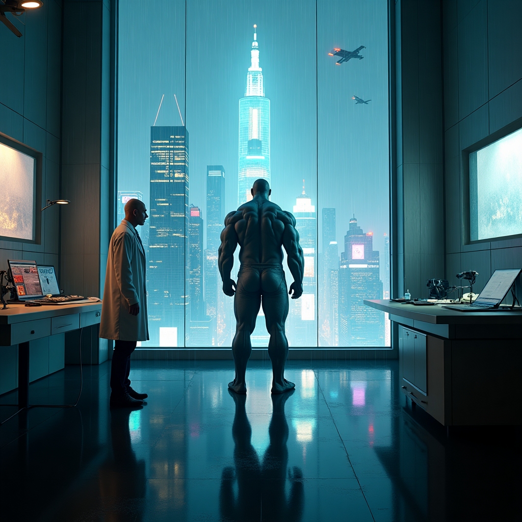 Конец 2224 года выдался на редкость дождливым и беспросветным. За окном моего домашнего кабинета, расположенного на сотом этаже небоскреба, серые струи без устали поливали сияющий неоном ночной город. Потоки воды размывали огни летающих автомобилей, выстраивающихся в бесконечные светящиеся очереди, превращая футуристический пейзаж в меланхоличный акварельный шедевр. Я отодвинулся от массивного голографического экрана, на котором плавали сложные молекулярные схемы моего секретного проекта, и потянулся, чувствуя, как затекшие мышцы спины и шеи протестуют против многочасового неподвижного сидения. Спина затрещала, красноречиво напоминая о долгих годах, проведенных в статичной позе за исследованиями и экспериментами. Я снял очки с толстыми линзами и тщательно протер их специальной салфеткой. Мир без них мгновенно расплывался в бесформенное пятно, где свет причудливо сливался с тьмой, лишая меня возможности различать не только детали, но и саму суть окружающих предметов. Врожденная аномалия зрительных нервов, не поддающаяся ни традиционной хирургии, ни передовому роботизированному протезированию, была моим персональным, смиренным проклятием. Но именно она, возможно, и заставляла меня видеть дальше и острее других ученых, не полагаясь на поверхностное восприятие глаз, а вглядываясь в саму суть вещей мысленным взором. Мой взгляд, сквозь отполированные до идеальной прозрачности линзы, упал на массивную бронированную дверь в дальнем углу кабинета. Дверь была выполнена из матового титанового сплава и не имела видимой ручки, открываясь лишь по скану сетчатки глаза и отпечатку пальца. За ней находилось оно. Проект «Домовой». Секрет, который я вынашивал, лелеял и взращивал почти пять лет, вкладывая в него все свои знания, амбиции и, как я теперь начинал понимать, часть собственной души. Мысль о нем заставила учащенно забиться сердце, а в висках застучала кровь. Сегодняшний день должен был стать кульминацией, апофеозом всех моих многолетних усилий. Сегодня я должен был забрать из Института Генетики и Робомодификации термоконтейнер с клоном моего мозга. Идея «Домового» родилась не на пустом месте. Она была прямым, хоть и дерзким, продолжением отцовского наследия. Петроградский-старший, мой гениальный отец, в свое время перевернул мир с ног на голову, создав и обнародовав технологию сращивания живой органики с продвинутым роботизированным скелетом. Его робомоды, изначально задуманные как солдаты неуязвимой армии, в итоге дали надежду и новую жизнь миллионам инвалидов по всей планете. Но я, с детства впитывавший его идеи, видел в них нечто большее. Не просто функциональный, пусть и совершенный, протез. Не просто телохранителя или рабочую лошадку. Я видел следующий виток эволюции. Новую ступень развития разумной жизни. Существо, органично сочетающее в себе лучшие, сильнейшие черты человека, гибкость мышления, способность к эмпатии, интуицию и машинную неутомимость, физическую мощь, абсолютную преданность и выносливость. Существо, способное не только мыслить, но и чувствовать, анализировать и принимать решения, превосходящие человеческие по своей скорости и точности. И при этом абсолютно управляемое, преданное своему создателю. Создать такого киборга с нуля, с чистого листа, было невозможно. Нужна была стабильная, предсказуема