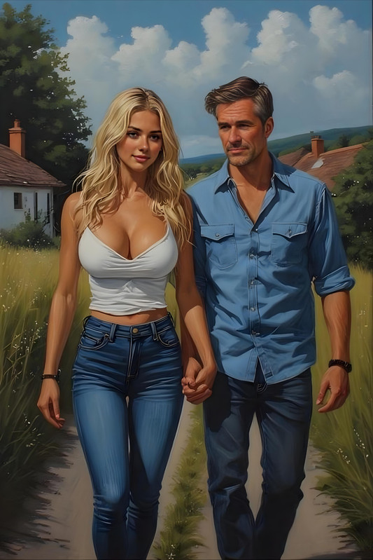 Геннадий замер. Солнечный свет, пробивавшийся сквозь шторы, золотил её кожу, скользил по плечам, очерчивал изгибы груди. Она не торопилась прикрываться — словно испытывала его. — Ну что, доволен? — спросила она, натягивая топик. — Не совсем, — он прикусил губу. — Может, прогуляемся? Недалеко… по посёлку. Диана застёгивая джинсы кивнула: — Хорошо. Только сначала позавтракаю, ладно? — Смешно, — Геннадий встал, протягивая руку. — Пойдём уже… Она взяла его ладонь, и их пальцы сплелись сами собой. Полуденное солнце палило немилосердно, заливая дачный посёлок жаркой испариной. Диана и Геннадий шли по узкой дорожке, их пальцы неловко, но бережно сплетались — её нежная ладонь в его грубоватой, но тёплой руке.