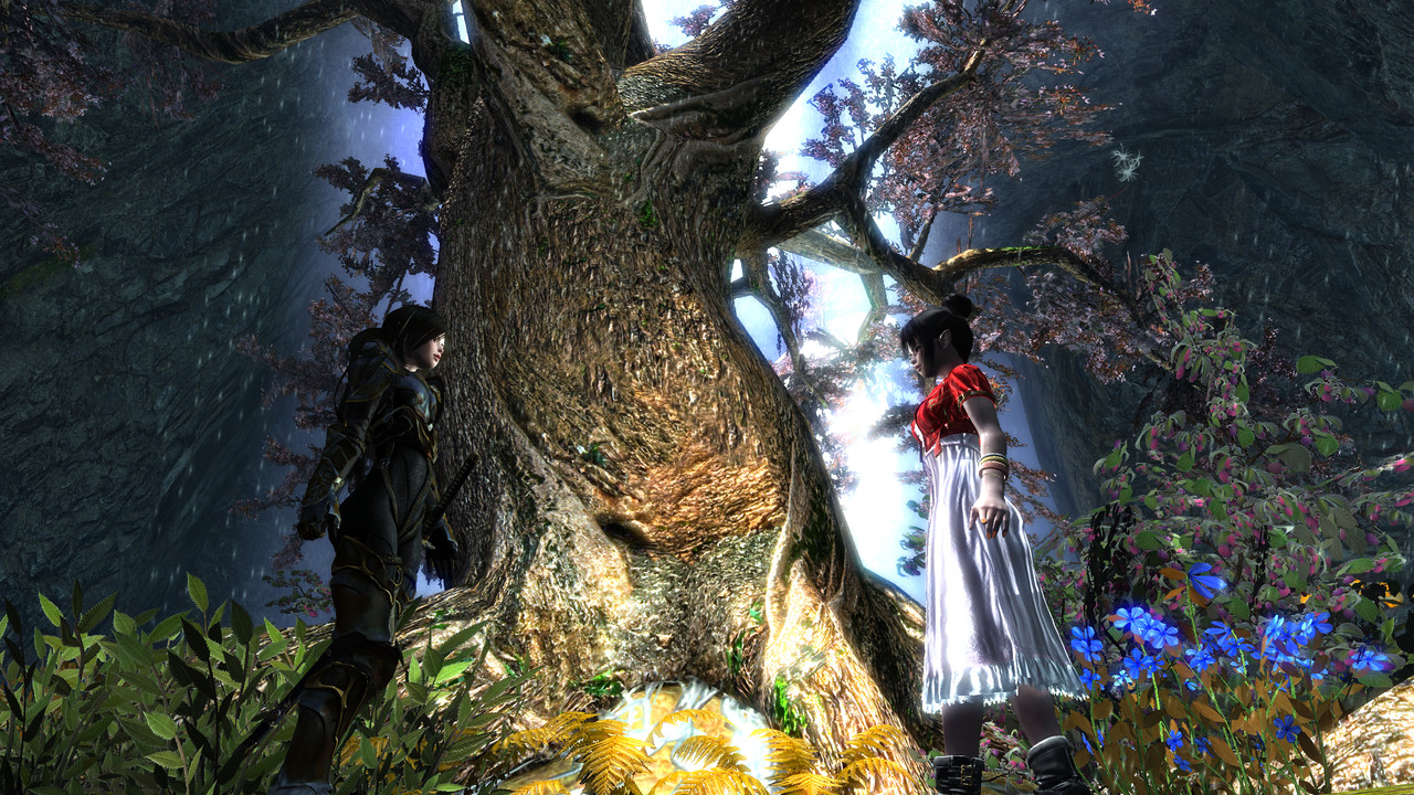 *** Следующей точкой, отмеченной Гарреттом на карте, было Святилище Великого Древа, пещера, находящаяся среди гейзерных озёр Истмарка. Сакуре хорошо было известно это место, но она и не думала, что где-то там расположено какое-то святилище. Впрочем, она с удовольствием совершит путешествие в болота Истмарка, а заодно и навестит, снова, Сестру Эду. Если не знать, где именно расположен вход во Святилище, то найти его практически невозможно. Поэтому сама Сакура поисками заморачиваться не стала, а просто спросила Эду. — Какая нужда тебя привела в это сокровенное место? - Спросила Эда, выслушав просьбу Сакуры. — Я ищу благословение Девяти. Возможно здесь я смогу найти Слезу Кинарет. - Ответила девушка. — Почему ты думаешь, что найдёшь именно благословение Кинарет? — Если здесь Святилище Великого Древа, возможно это как-то связано с деревом Златоцвет, растущим в Вайтране, неподалёку от храма Кинарет. Сестра Эда отвела Сакуру к неприметной щели в скале, в которую едва мог протиснуться взрослый человек. Сакура втиснулась без проблем, и пошла по серпантину дорожки вниз. К её искреннему удивлению, в пещере было светло, практически как на улице, чему способствовало множество световых окон, которые сама природа образовала естественным образом в высоченном куполе. Откуда-то сверху падал небольшой водопад, капли которого, освещаемые лучами солнца, сверкали всеми цветами радуги. Сакура даже невольно остановилась, чтобы полюбоваться этим замечательным зрелищем. Тропа привела к небольшому озеру, с чистой, прозрачной водой, обогнула его, и повела снова на верх. Там на большом уступе стояло красивейшее дерево, покрытое множеством бело-розовых цветов. - "Стало быть, это и есть Священное Дерево." - Подумала девушка, любуясь приятными на вид цветочками. Сакура настолько увлеклась, что не заметила даже, что она не одна. С другой стороны ствола стояла, и с интересом наблюдала за Сакурой... Она сама?.. То есть - точная копия Сакуры. Такие же черные волосы, но с другой причёской, такие же серые глаза, такая же фигура, будто это родная сестра-близнец. Только одета девушка была, в отличие от Сакуры, не в платье и курточку, а в кольчужную, эбонитовую броню. — Тебе что-нибудь нужно? - Спросила девушка голосом Сакуры. - Определённая вещь? Зелье? Или обнять тебя? Всё для тебя! — Э-э-э... - Только и смогла выдавить из себя удивлённая Сакура. — Ты что, немая? - Спросила Копия Сакуры. — Да... то есть - нет. Незнакомка весело рассмеялась, в её глазах сверкнула озорная, золотистая искорка. — Кто ты? - Спросила Сакура. — Я Мика. Я пришла сюда полюбоваться цветением сакуры. А ты? — А я... Сакура. - Смутилась Сакура. Мика опять добродушно рассмеялась. — Какое интересное у тебя имя! Кто его дал тебе? — Моя мама. — Сакура по акавирски - цветущая вишня. Это прекрасное дерево, что ты здесь видишь, не что иное как акавирская сакура! — Кажется, ты очень любишь природу. - Сакура нежно коснулась одного из цветков цветущей вишни. — О, да! - Ответила Мика. - Вода, животные, растения... Всё это глина, из которой Дибелла лепит свои произведения искусства. И в сердце каждого исследователя живёт восхищение этой красотой. — Дибелла? - Удивилась Сакура. Разве она не богиня физической любви? — Одно другому не мешает! - Снова рассмеялась Мика. - Разве в этом мире хоть что-то живое существует без физической любви? Посмотри на эт