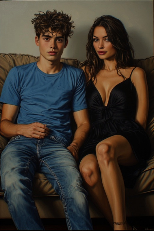 За ней стоял один из учеников, широко раскрыв глаза. Его лицо выражало полнейшее недоумение: его всегда собранная и требовательная учительница… целовалась с этим взъерошенным парнем?! Мгновение — и он исчез так же быстро, как появился, боясь, что его заметят. А Денис и Таня так никогда и не узнали, что в этот момент их кто-то видел. ******* Дима вернулся из магазина, слегка запыхавшись, но довольный своими покупками. В руках он сжимал роскошный букет алых роз и бутылку приличного вина. Аккуратно поставив цветы в вазу, он на мгновение задумался, поправляя один из цветов, чтобы букет выглядел идеально. Вино же отправилось в холодильник – пусть охлаждается, оно должно быть в самый раз к приходу мамы. Проведя рукой по затылку, Дима вздохнул. Кулинарные навыки у него были, мягко говоря, скромные, а все деньги он уже потратил на вино и цветы. Заказать еды тоже не получится… Впрочем, он утешил себя мыслью, что мама вряд ли вернется с празднования голодной. Да и зачем так заморачиваться? Можно сделать простую, но элегантную закуску – нарезать сырную тарелку и фрукты! Сосредоточенно он разложил сыр тонкими ломтиками, поправил немного тарелку с фруктами и отправил всё в холодильник, чтобы все успело охладиться. Как только дверца холодильника закрылась позади разлался щелчок и входная дверь распахнулась. В квартиру ввалился Денис, сияющий и счастливый. — Чего ты такой довольный-то? — нахмурился Дима, разглядывая брата. — Да так, настроение хорошее, — отмахнулся Денис, скидывая куртку на вешалку. Взгляд его скользнул по цветам, и он одобрительно кивнул. — О, прикупил, да? Ну красава, вопросов не имею! — Он хлопнул Диму по плечу так, что тот едва не споткнулся. — Ждём тётю Алину, значит? ******* Алина вернулась домой поздно — гораздо позже, чем они рассчитывали. Щёки её порозовели от выпитого, а походка слегка покачивалась. — Ой, мальчишки, так классно погуляли! Вы бы знали! — залилась она смехом, едва переступив порог. Дима тут же подскочил к ней с букетом цветов. — Ой, это мне?! Спасибо большое! Какие молодцы! — Алина шумно вдохнула аромат роз, а затем расцеловала обоих парней в щёки. — Слушайте, мне надо куда-то присесть, ноги от каблуков болят. Пойдёмте в гостиную, посмотрим что-нибудь по телевизору, мне срочно нужно рухнуть на диван! Они устроились в гостиной: Алина в центре, а парни по бокам. Денис быстро нашёл какую-то комедию, и они приглушили свет. — Ооох, ну наконец-то! Как же я ждала этого момента... — Алина сладко потянулась. — Ножки затекли... — Хочешь, помассажирую? — предложил Дима, но она лишь лениво махнула рукой. — Ой, нет... Спасибо, конечно, но не стоит... Просто хочу немного расслабиться... И, словно случайно, она облокотилась на Дениса, который с невозмутимым видом уставился в телевизор.