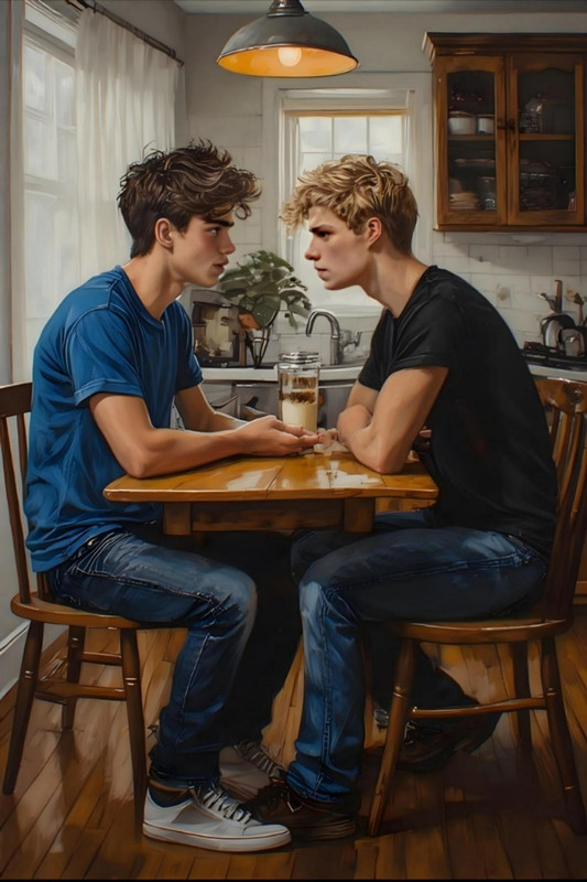 — Воу! — Денис присвистнул. — Тётя Алина, ты просто бомба! Шикарно выглядишь! Она улыбнулась, слегка покраснев, и махнула рукой: — Спасибо, Денис. Сегодня День учителя, так что я убегаю! Завтрак на столе - наложите сами. Увидимся вечером! И, словно бабочка, она стремительно скользнула в прихожую. Денис тут же толкнул брата локтем: — Эй, "сын года", ты бы мать с праздником-то поздравил! Дима хлопнул себя по лбу и рванул за ней, но Денис ловко поймал его за рукав. — Да сиди уже! — рассмеялся он. — Вечером поздравишь. Может, купишь цветы, вино... Ужин приготовишь... Дима разочарованно вздохнул. — Я почти на мели... Надо было раньше думать... — Мда... — Денис задумчиво почесал затылок, затем полез в карман и вытащил смятые купюры. — "Знал бы прикуп — жил бы в Сочи". .. У меня тоже негусто. Он пересчитал деньги, вздохнул и протянул брату несколько купюр. — Держи. На цветы и вино должно хватить. Только смотри — не купи какую-нибудь кислятину. Бери красное, полусладкое.