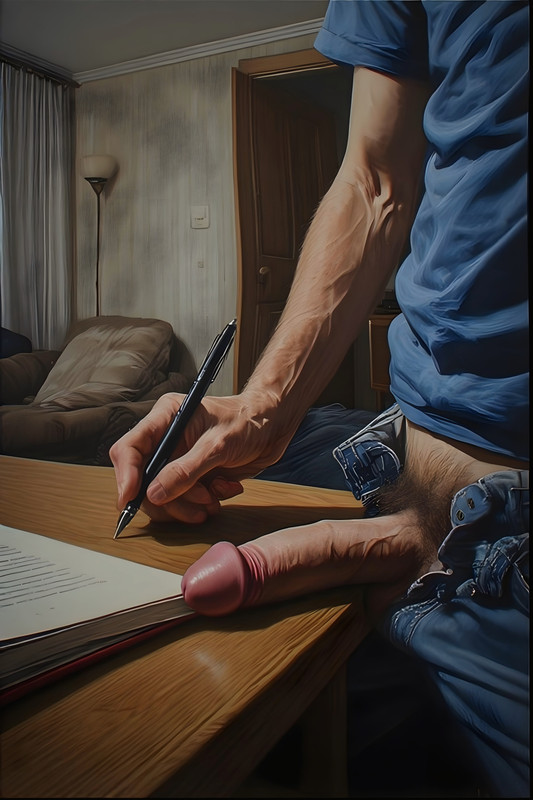 Она хотела что-то сказать, но в этот момент из глубины квартиры раздался мужской голос: — Танюх, кто там? Из-за её плеча выглянул высокий мужчина — крепкий, с короткой стрижкой. Тот самый "парень" Тани. "Так вот почему она не отвечала…" "Почему бы немного не пошалить?" — Татьяна Николаевна, у нас же занятие сегодня! — возмущённо сказал он, глядя ей прямо в глаза. — Вы сами назначили! Таня замерла. На её лице читалась растерянность. — Ой… правда… — пробормотала она, понимая, что придётся подыграть. Она бросила виноватый взгляд на мужчину. — Володь, ну совсем из головы вылетело… Тот изучающе посмотрел на Дениса. — Ученик? — Да, — быстро подхватила Таня. — Не могу же я его сейчас развернуть… Проходи, Денис. Она отступила в сторону, пропуская его внутрь. ******* Какое-то время они действительно занимались — Денис старательно выводил в тетради предложения под диктовку Тани, а потом они разбирали его ошибки. Володя, как назло, не мог усидеть на месте: то исчезал в туалете, то бродил по кухне, то разговаривал по телефону, задумчиво расхаживая по квартире. Его шаги то приближались, то удалялись, создавая нервирующий фон. Когда он наконец устроился на диване, Денис перестал притворяться, будто его интересует русский язык. Он отложил ручку, откинулся на стуле и нагло уставился на Таню. Его взгляд скользил по её губам, шее, груди, и с каждой секундой ей становилось всё неловче. — Ты чего, Денис?! — прошептала она. — Да ничего, — усмехнулся он. — Ты же сама знаешь, что мы не договаривались ни о каком уроке. — Ну и чего ты хотел-то? — нахмурилась Таня. — Ты пришёл на занятие, я провожу занятие... — Чего я хотел? — Денис встал, спокойно расстегнул джинсы, и прежде чем она успела понять, что происходит, его уже полувозбуждённый член лежал на столе — тёплый и твёрдый.