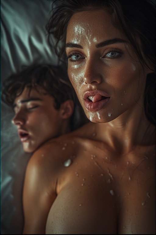 — Ты уверена? Вместо ответа она стянула футболку через голову. Лунный свет падал из окна, освещая её тело. Ее грудь — объемная, с потемневшими сосками, которые уже прямо смотрели прямо на него. Талия — тонкая, переходящая в широкие бёдра. Треугольник волос внизу — тёмный, густой. — Смотри, — сказала она. — Смотри на меня. Запоминай, сынок. Он смотрел. Затаив дыхание. — Сын...я...Я хочу тебя, — сказала она нежно и просто. — Всю жизнь не хотела никого, кроме мужа, а сейчас — хочу. Тебя.