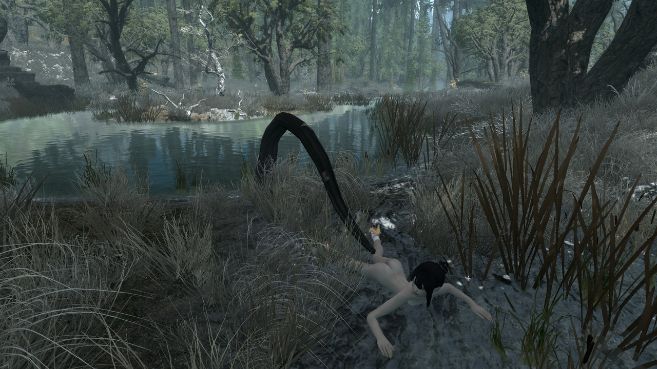 ![]() Однажды, во время своих путешествий, Сакура забрела в долину болот Хьялмарка. Ей всегда нравилось это место; Красивая и необычная природа. Уникальные монстры, большинство из которых в остальных местах Скайрима почти не встречаются. В этих болотах очень легко было заблудиться и нарваться на какое-нибудь существо, которое с радостью воспользовалось бы беззащитностью одинокой девушки. Как мы помним, очень многие монстры Скайрима, ещё со времён нефилимов, имели непреодолимую тягу и похоть к человеческим женщинам. Поэтому шанс быть изнасилованной был на много выше, чем шанс быть банально съеденной. Сакура не знала почему это так, но частенько она забредала в самые глухие уголки провинции, в поисках новых приключений на свою пятую точку и добровольно отдавалась существам, получая новые ощущения. К тому же она продолжала, по возможности, коллекционировать сперму особо редких и необычных существ для алхимика Йоанны.