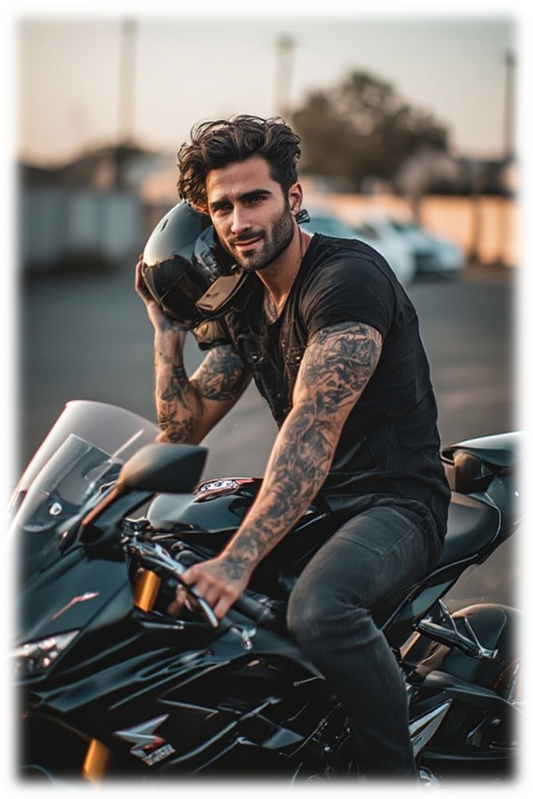 Макс. Он улыбнулся своей ленивой, хищной улыбкой, слез с мотоцикла. На нём были потертые джинсы, сидевшие низко на бедрах, и черная футболка, обтягивающая торс так, что видно было каждую линию мышц. Татуировки на руках — драконы, руны, какие-то символы — поблескивали на солнце. От него пахло бензином, кожей и тем особенным мужским запахом, от которого у Леры всегда подкашивались колени. — Лера, — сказал он, подходя ближе. — Какая встреча. — Макс, — выдохнула она, чувствуя, как щеки заливает румянцем. — Ты... тоже за покупками? — Масло для мотоцикла надо, — он кивнул в сторону магаза автозапчастей. — А ты что купила? Она инстинктивно спрятала пакет за спину. Поздно. Он уже увидел название магазина. — Белье? — в его глазах заплясали чертики. — Покажешь? — Макс! — Да ладно, пошутил. — Он улыбнулся, но взгляд остался серьезным, раздевающим. — Хотя интересно, что выбирает такая красивая женщина, как ты. Она не знала, куда деваться. Стояла перед ним, мямлила что-то про купальник, а он смотрел на неё в упор, и от этого взгляда плавились трусики. — Купальник, значит, — протянул он. — Поездка. Правильно, на море надо в красивом. — Он помолчал секунду. — А Игорь знает, какой ты выбрала? — Он не смотрит, — вырвалось у неё раньше, чем она подумала. Макс усмехнулся, но как-то грустно. — Дурак, — сказал он тихо. — Если у тебя такая жена, на неё надо смотреть. Постоянно. И не только смотреть. Лера почувствовала, как кровь прилила к лицу, к шее, к груди. Соски вжались в ткань топа так, что, наверное, было видно за километр. — Макс, не надо... — Чего не надо? — он шагнул ближе. Теперь между ними было полметра. Она чувствовала его запах — чистый, мужской, с нотками пота и табака. — Правду говорить? Что ты самая красивая женщина в этом городе? Что я пятнадцать лет жалею, что не посмел тогда? — Ты посмел, — выдохнула она. — Ты дал мне номер. — А ты не позвонила. — Я выходила замуж. — За моего друга. Они смотрели друг на друга. Время остановилось. Люди вокруг исчезли. Был только он — высокий, сильный, пахнущий опасностью, и она — с бьющимся сердцем и мокрыми трусиками. — Лера, — сказал он, и его голос стал низким, хриплым. — Я не буду ничего делать. Не сейчас. Но я хочу, чтоб ты знала: я всё ещё хочу тебя. Всё так же, как тогда. Даже сильнее.
